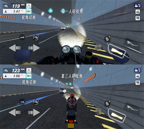 除了基本操作按键的调整外,骑士们进入赛道后,可以通过屏幕左上角的摄像头按键自由切换第一人称视角或第三人称视角,是追求第一人称紧张刺激的破风,还是第三人称更加开阔的视野,骑士们均可自行选择。