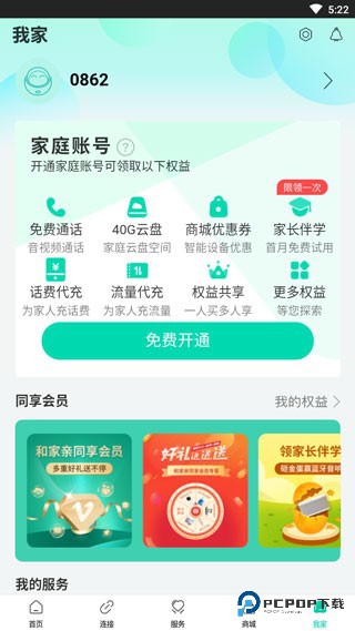 5、最后,点击“我家”,你可以在这里开通家庭账号,享受全家服务。