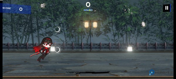 5、进入游戏如图,点击圆圈是跳远,可跳跃劈开空中的音符,也可跳跃击杀空中的敌人;