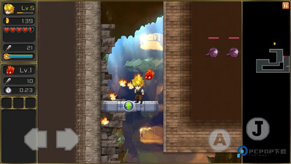 游戏操作一共有四个键,分别是左右移动,跳跃和攻击。“A”表示攻击,“J”则是跳跃。但如果只是单纯的会操作这几个键,那么这个游戏是永远也不可能过关了。我们需要学会不同的操作键的组合,前进的时候也要不停的打怪,对于那种在空中停留的怪就需要应用跳跃键。长按攻击键还可以快速攻击哦,加大杀伤力。