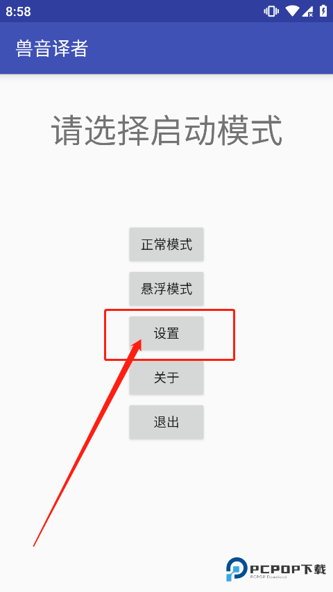 1、进入兽音译者的首页,点击下图所示为位置打开“设置”