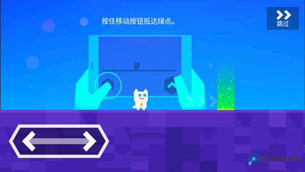 2、跳:在右下方的向上箭头为控制小白起跳,可联合左右按键一起使用,分为向左跳,向右跳