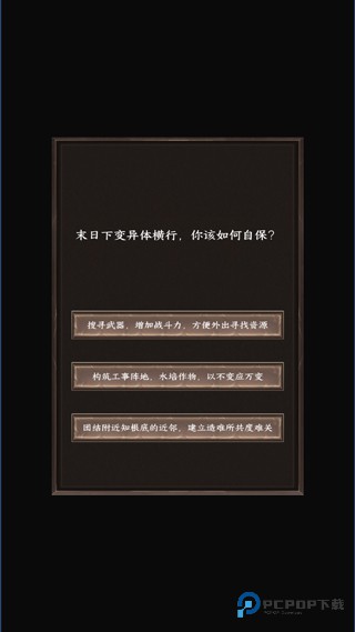 1、打开我在末世开超市游戏,点击开始游戏,然后会出现一些选项,你需要根据自己的本心进行选择;