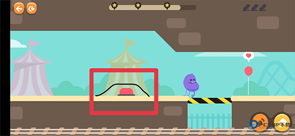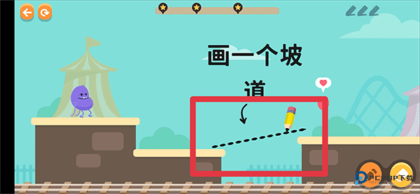 第二关:在该地方画一个坡道,然后让豆子前进去拿取气球