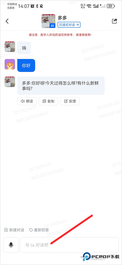 4、点击它就会进入到对话界面,然后就可以在下方对话框中输入你的内容并与数字人进行对话啦