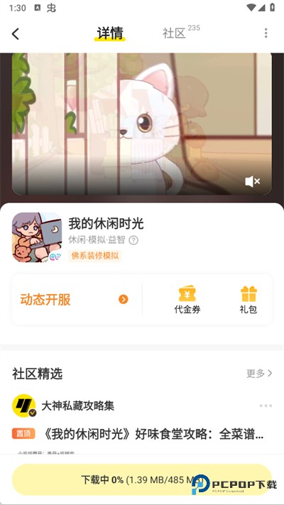 这里以我的休闲时光为例,点击进入游戏详情界面