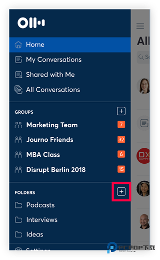 在文件夹屏幕上,点击右上角的图标以显示“添加对话”菜单。 当你点击它时,将显示记录的数据列表,因此请选择要分类到文件夹中的数据。