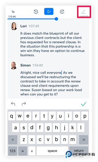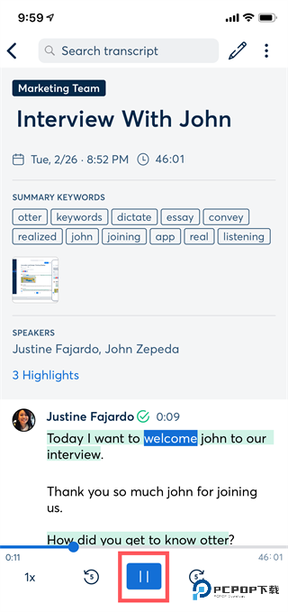点击屏幕底部中央的图标以播放记录的数据并突出显示你正在阅读的单词,你还可以通过点击要播放的单词从任何点开始播放。