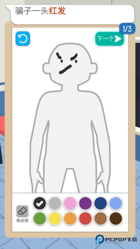3、根据受害者提供的信息,用画笔在游戏界面绘制嫌疑人的相貌特征。