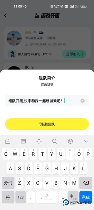 4、创建组队,可以写上组队的简介