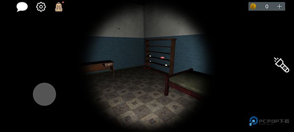 4、初始状态,玩家拥有手电筒(可关闭),左上角分别是来聊天、设置、以及背包,用于游戏中收集线索道具。