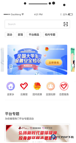 3、进入软件首页,您可以查看并参与软件提供的各种活动或者专题学习服务,丰富您的学习内容和方式。