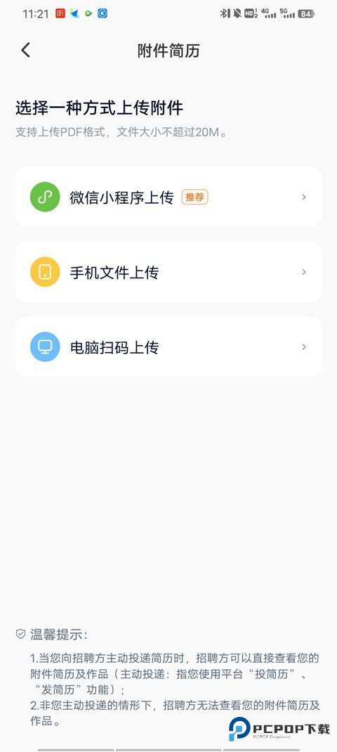 3、可以通过微信小程序、手机文件或电脑扫码等方式上传自己的附件