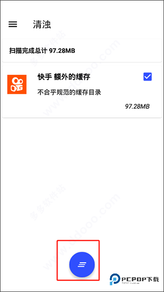 2、进入后点击中间按钮即可开始扫描垃圾,最后扫描完成后再次点击蓝色按钮即可进行清理;