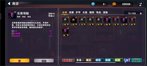 2、金币:主要货币,核心渠道是通过刷图得材料→铁匠铺制作0阶0级装备→去商店卖或自动卖出,来钱最快(到第四个地牢不掉落低级材料,掉落的中级再做3阶0级装备)