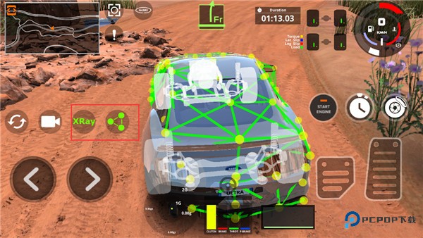 6、激活这两个选项,便能查看车辆的建模框架和重心偏移图,了解更多细节。