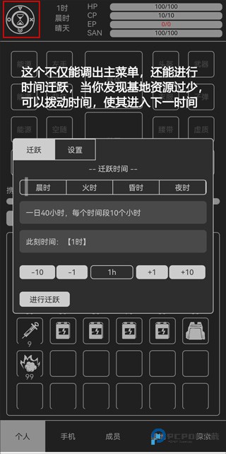 5、这个不仅能调出主菜单,还能进行时间迁跃,当你发现基地资源过少可以拨动时间,使其进入下一时间