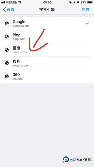 6、选择百度,然后保存,回到主界面