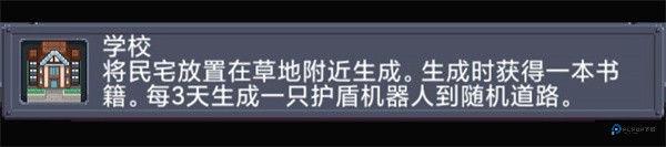 学校的作用在刚建起来时就发挥大半了。建起学校时给一本书,并把草地升级成足球场。刷出的机器人可以爆电棍,可以缓解v哥的武器匮乏症,并加强控制性。足球场自动加运动,是一种非常实用的建筑