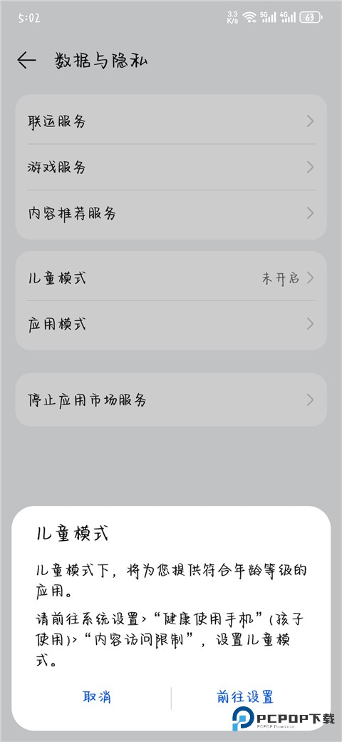 2、进入“个人中心”后,点击“设置”,现在数据与隐私中的儿童模式”;