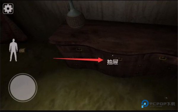 人物睁眼,优先到正前方抽屉中收集线索,从屏幕右侧楼梯往上走。
