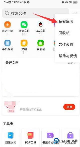进入页面后,点击右上角三个点,选择私密空间。