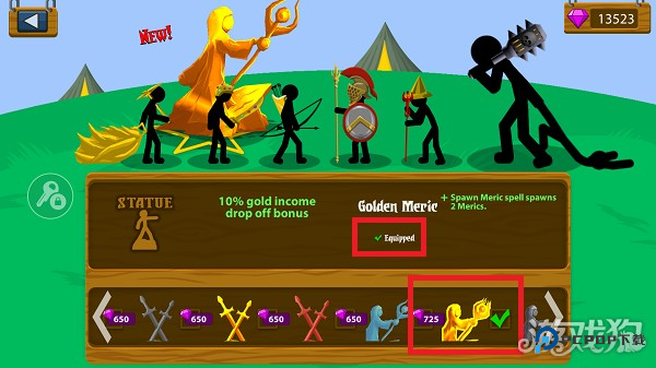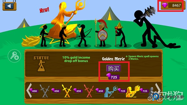2、你需要尝试使用大量的金币来提升自己的火柴人军队,快来试试。