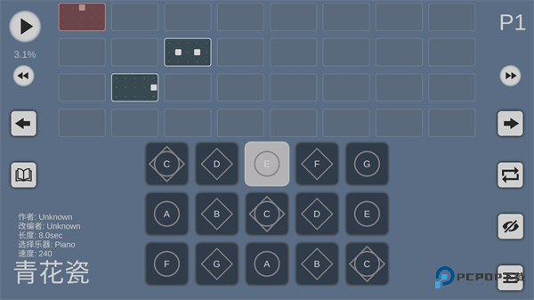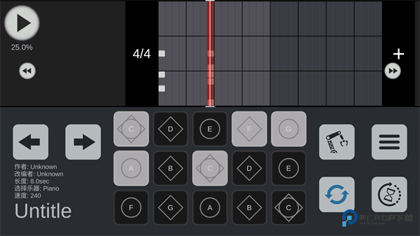 5、最后在键位这里还可以将我们刚制作的乐谱来一键播放。