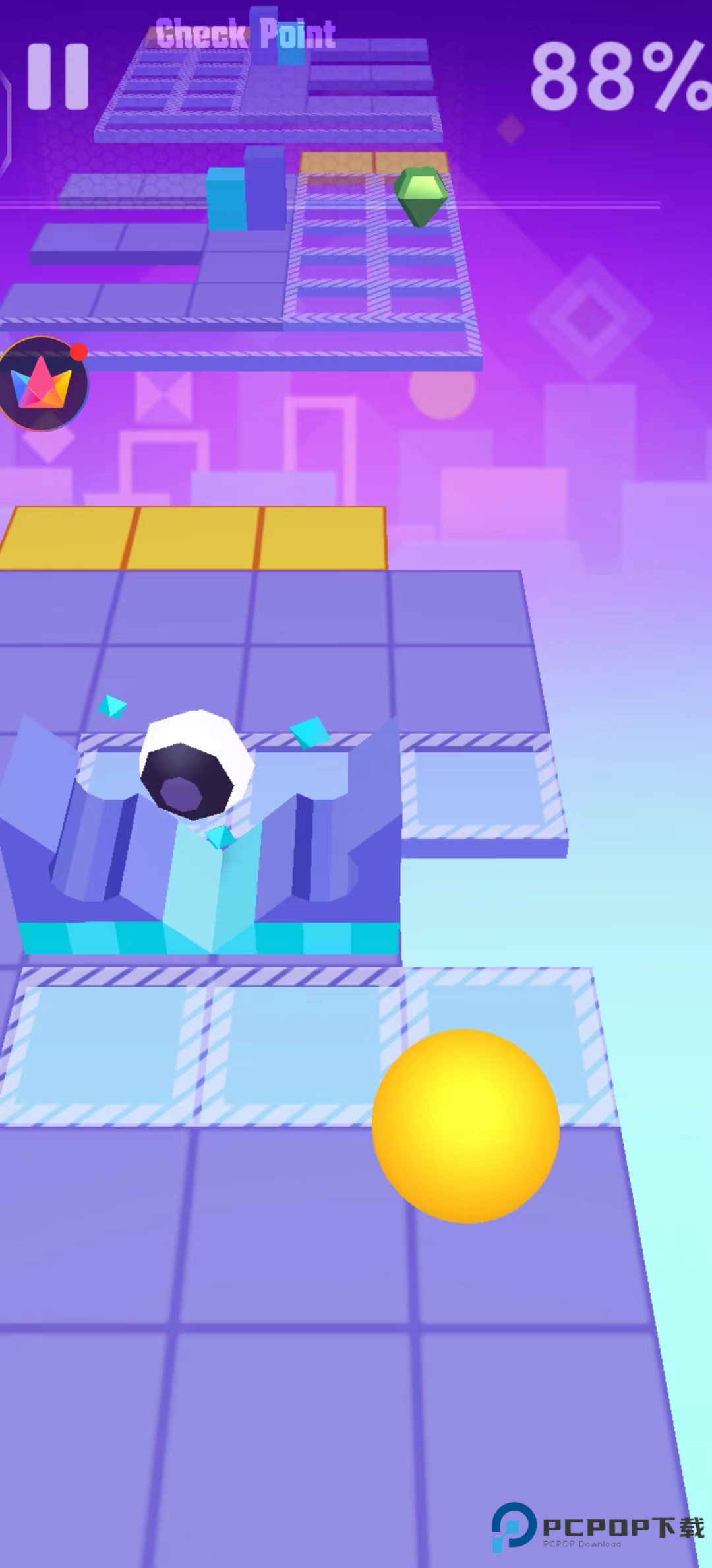 1、极简的操作方式,用手指左右移动球体穿越障碍,挑战你的反应能力;
