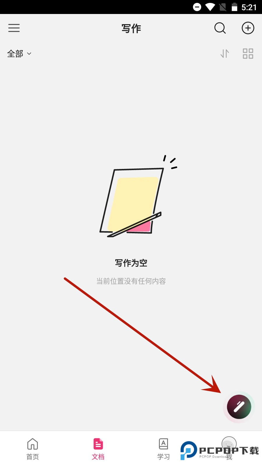 2、在文档模块界面,点击右下方的笔图案,进入编辑功能