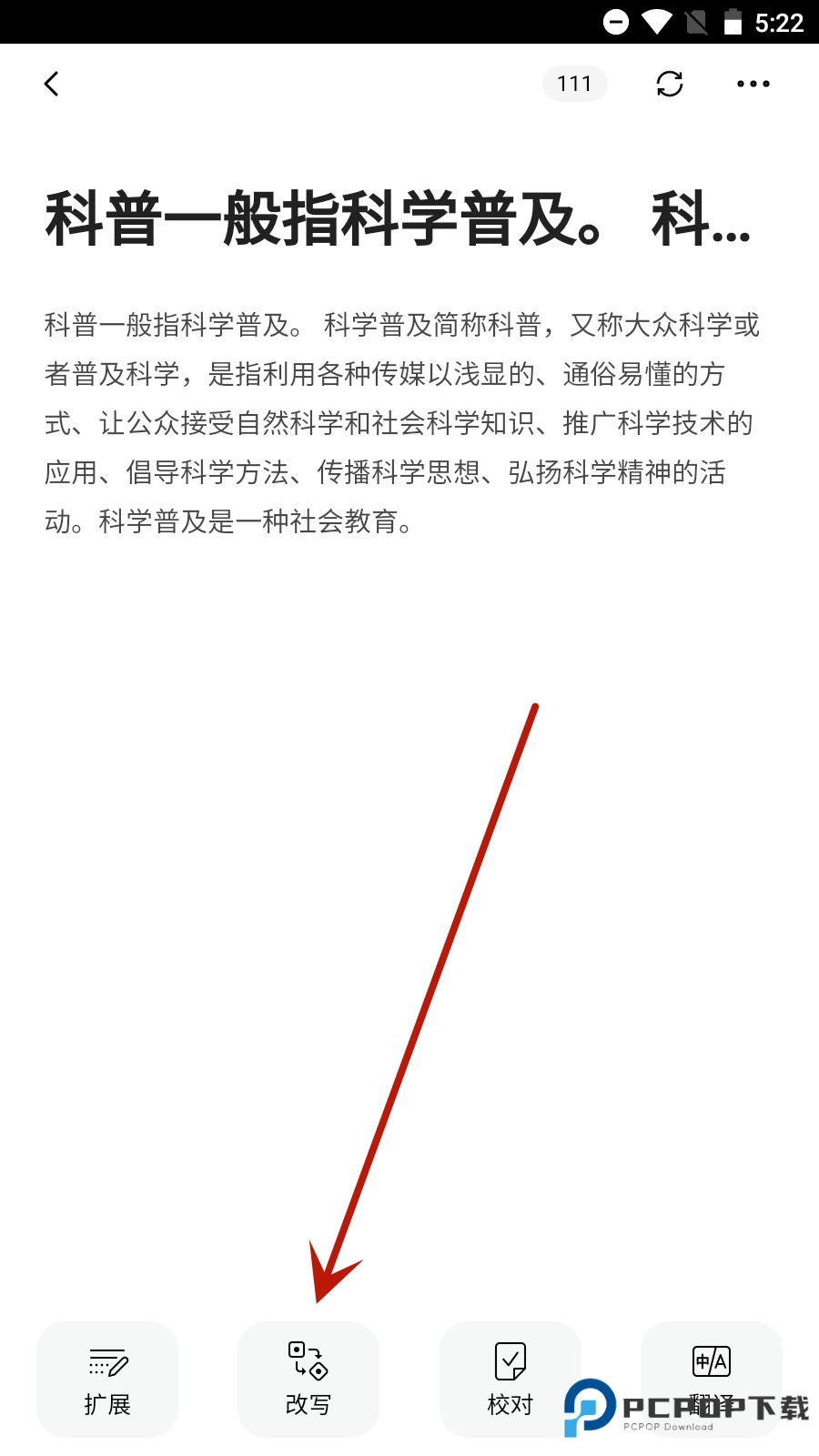 3、复制进你要改写的句子,下方是功能区,有丰富的功能,选择改写的模式,有基础改写、学术改写、强力改写。