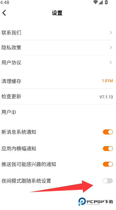 3、找到"夜间模式"开关控件,点击启用即可切换至深色显示主题。