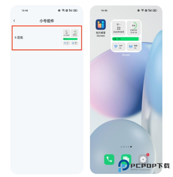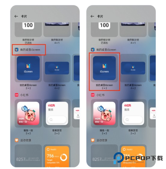 2、在列表中找到我的桌面iScreen,选择小组件尺寸,点击或拖动小组件到桌面;