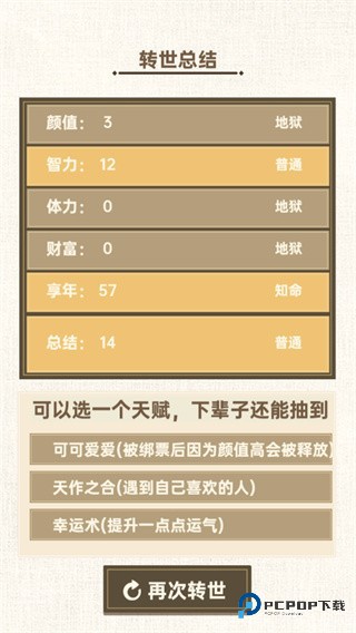 4、去选择百变的人生,玩法比较自由,属性的随机分配看看人生结果;