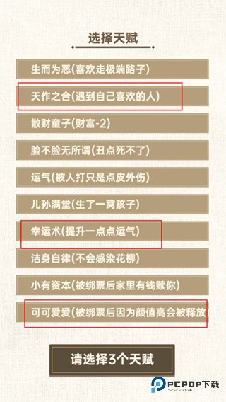 3、从十个当中选择三个天赋;