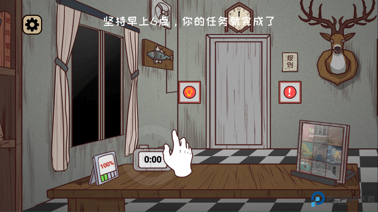9、不过坚持到早上6点你的任务就完成了,点击时钟