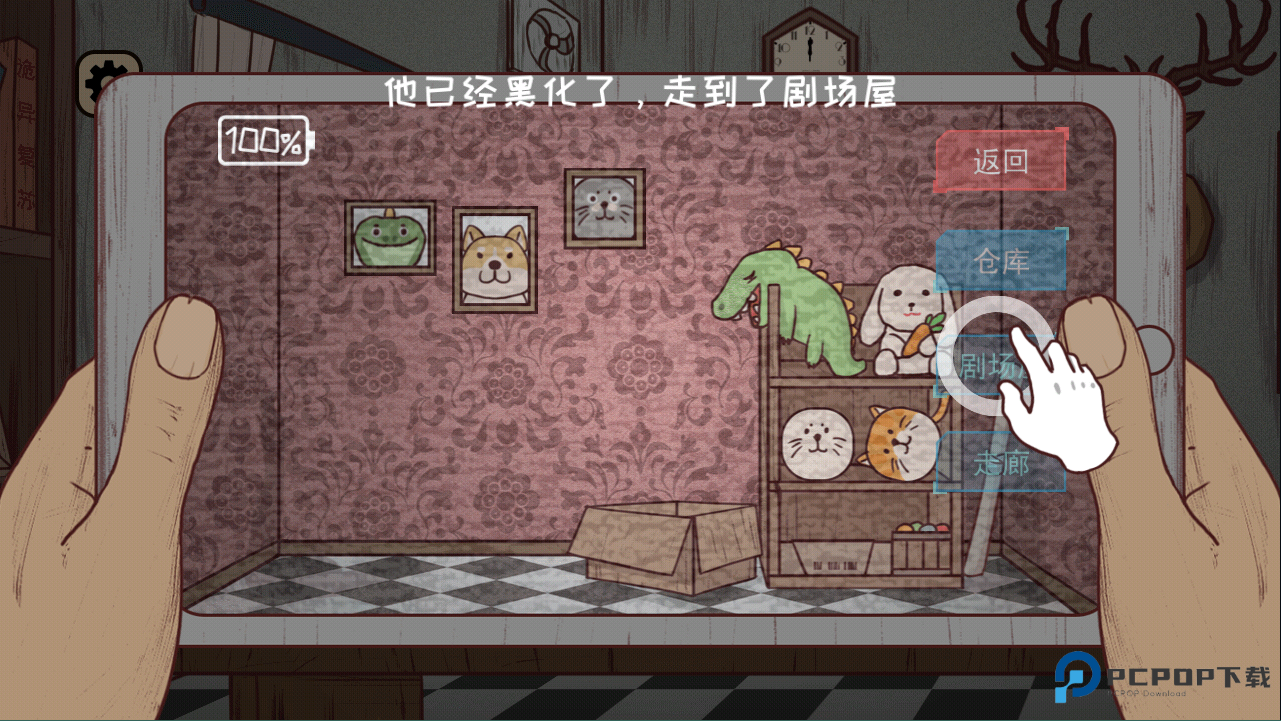 5、有一只玩具熊已经黑化了,点击剧场屋