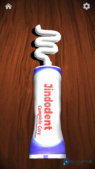 3、例如牙膏,页面中就会出现一个拧开的牙膏,这时我们从顶部向上挤。牙膏会越挤越多,挤完后会重新开始很减压;