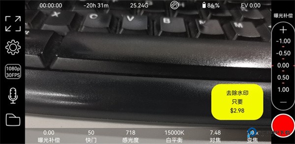 4、在下面和右边还具有拉动功能的全面手动控制:曝光-快门速度-对焦-感光度等等。