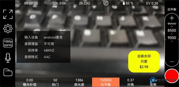 2、支持手动控制曝光、快门、感光度、对焦、变焦和白平衡
