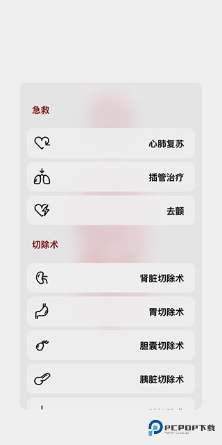 11、点击右下角的手术刀图标,可以为模型进行相应的治疗措施,其中包括了急救术和切除术等。