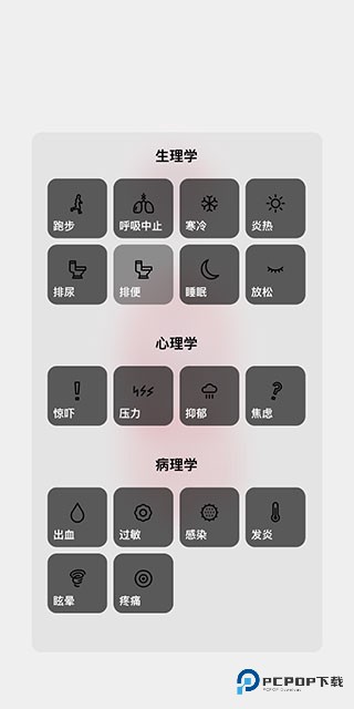 10、点击右下角的人体图标,可以为该模型设置不同的状态,其中包括了生理学、心理学和病理学三方面,可以观察人体在不同状态下的反应。