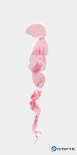 4、我们用手指向屏幕两边进行拖动,会将人体器官分开显示,这样会更有助于我们查找对应器官,点击屏幕中央,器官又会聚拢在一起。