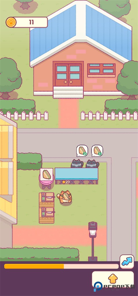 6、点击下方黄色的箭头,这里可以在收获一只猫猫,可以帮助你制作三明治;