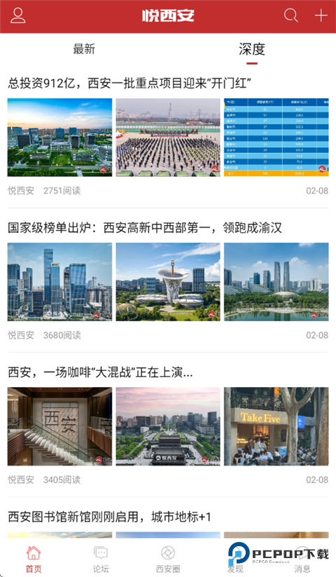 1、首先在手机上打开悦西安app,如下图所示,有最新资讯与深度资讯;