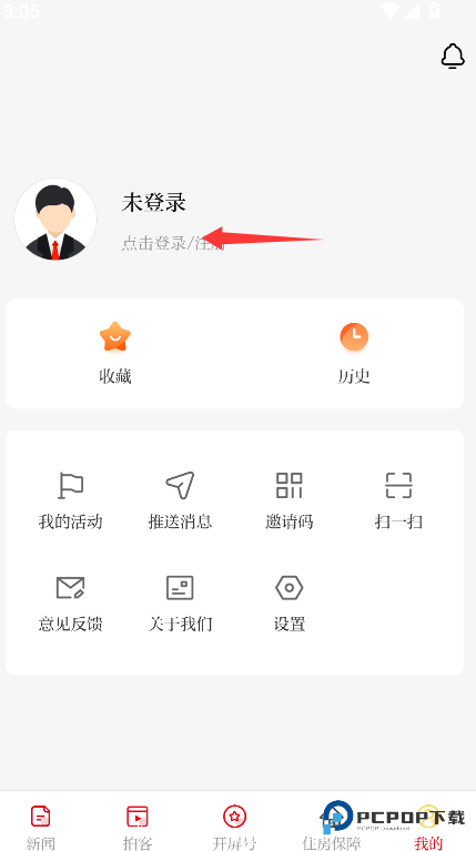 2、进入个人页面后,点击页面上方的“登录”按钮,进入账号登录界面。