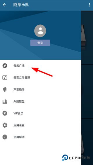 2、而通过右上角的横杠按钮,我们可以打开个人功能列表,从而点击进入“音乐广场”页面,查看其他用户上传的音乐作品。