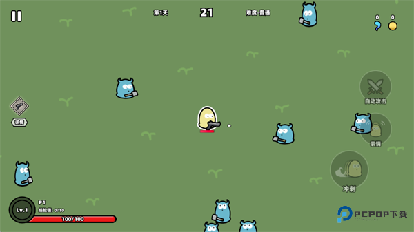 5、进入游戏后,玩家通过滑动屏幕来控制角色移动,点击右边的攻击按键进行自动攻击。角色会自动射击靠近的敌人,玩家只需专注控制角色移动和躲避敌人的攻击。
