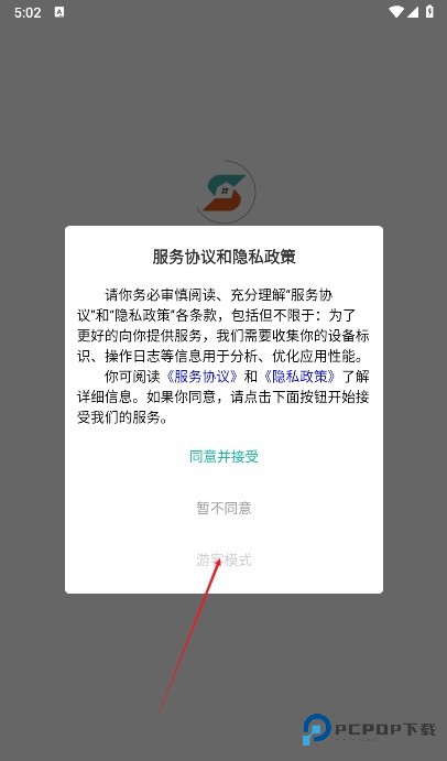 1、点击选择游客模式;
