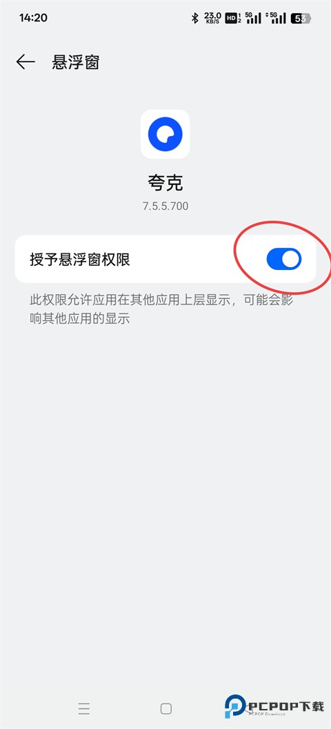 6、找到手机中的夸克app,授予悬浮框的权限。
